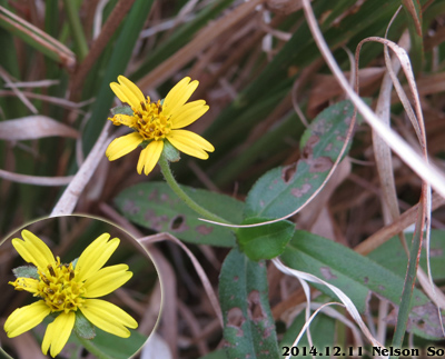 蟛蜞菊又名黃花蜜菜,分佈於低海拔之溼地及田畦,常見於海濱附近。